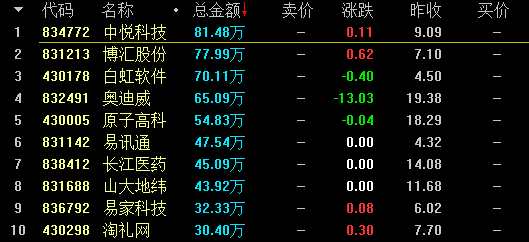 ?。▌?chuàng)新層競價交易股票盤內(nèi)成交額前十名)