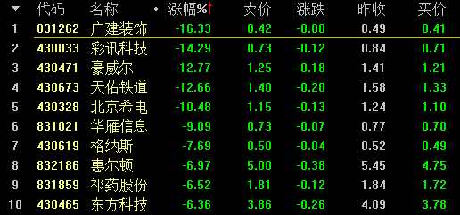 ?。▌?chuàng)新層做市股跌幅前十名)