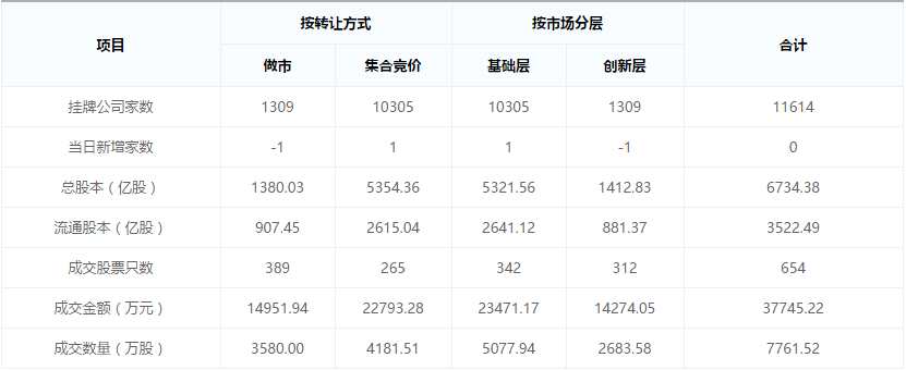 3月14日,創(chuàng)新層、基礎(chǔ)層分別成交1.43億元和2.35億元,合計(jì)成交3.78億元。指數(shù)方面,三板做市(899002)昨日以934.22點(diǎn)開盤,盤初指數(shù)窄幅震蕩,臨近午盤指數(shù)跌幅放大,截止收盤報(bào)932.93點(diǎn),跌0.14%。成分股全天成交6370萬(wàn)元。