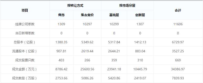 3月19日,創(chuàng)新層、基礎(chǔ)層分別成交1.04億元和2.39億元,合計成交3.43億元。