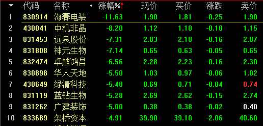 (創(chuàng)新層做市股跌幅前十名)