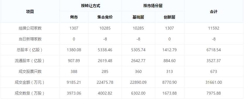 3月22日,創(chuàng)新層、基礎(chǔ)層分別成交8770.9萬元和2.29億元,合計(jì)成交3.17億元。