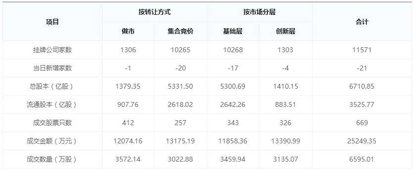 【前一交易日市況回顧】 3月23日,創(chuàng)新層、基礎(chǔ)層分別成交1.34億元和1.19億元,合計(jì)成交2.53億元。