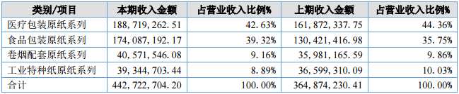 具體來看,醫(yī)療包裝原紙系列銷售收入同比增加16.59%,系醫(yī)療包裝原紙市場持續(xù)打開,產(chǎn)品銷售隨市場需求增加穩(wěn)步提升;