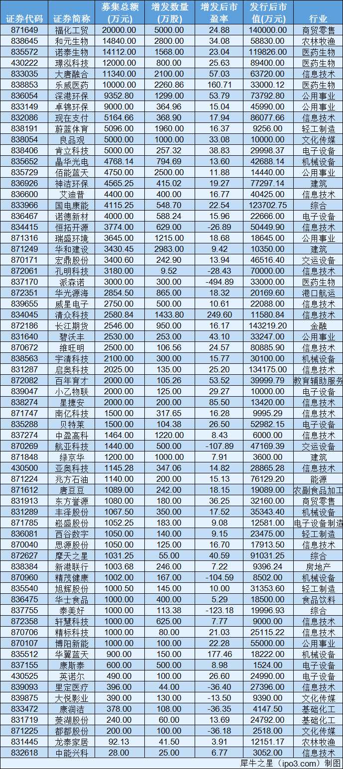 二、定增融資情況 本周共有67家掛牌公司完成定增融資,累計融資額22.24億元,其中6家公司融資額度超過1億元,具體情況如下: