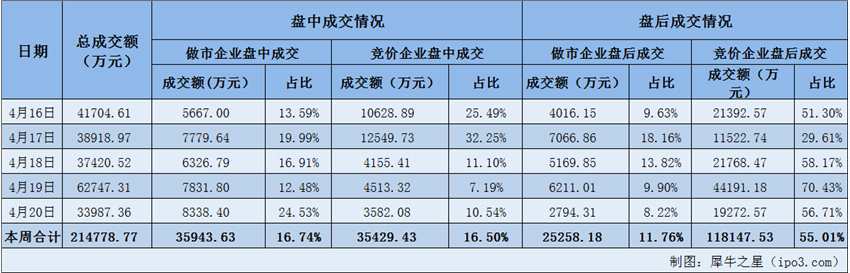 一、本周交易情況 本周(4月16日-4月20日)新三板市場交易總額為21.48億元,盤內(nèi)成交7.14億元,盤后大宗交易成交14.34億元。