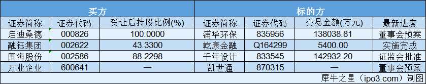 三、上市公司并購掛牌公司 本周新增4例上市公司并購新三板企業(yè),具體情況如下: