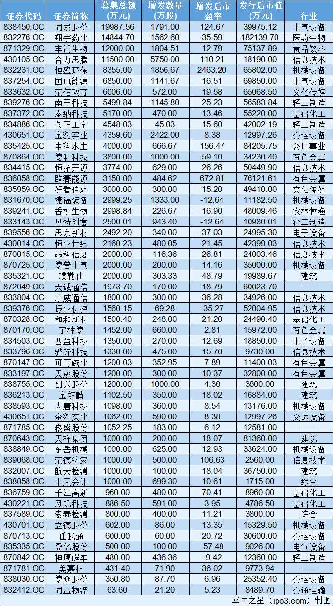 二、定增融資情況 本周共有53家掛牌公司完成定增融資,累計(jì)融資額16.56億元,其中4家公司融資額度超過1億元,具體情況如下:
