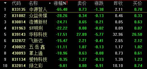 ?。ɑA(chǔ)層做市股跌幅前十名)