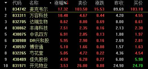 ?。ɑA(chǔ)層做市股漲幅前十名)
