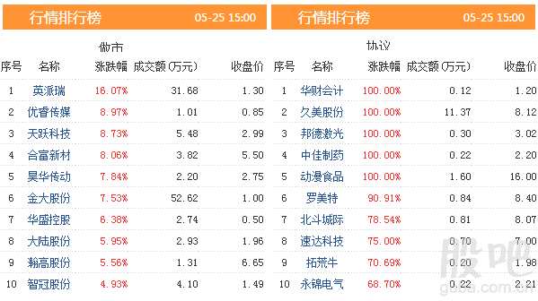 從新三板股票的市場(chǎng)表現(xiàn)來(lái)看,25日有5只股票漲幅超過(guò)100%,共有25只個(gè)股漲幅超過(guò)30%。