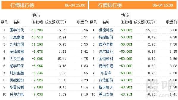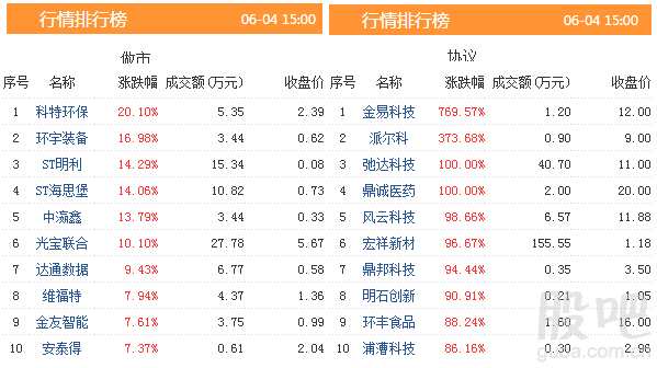 4日共有616只股票發(fā)生交易,成交金額2.43億元,做市轉(zhuǎn)讓成交0.80億元,協(xié)議轉(zhuǎn)讓成交1.63億元,成交數(shù)量6695.31萬(wàn)股。