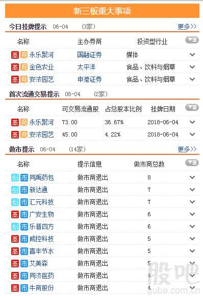4日新增掛牌企業(yè)3家,掛牌企業(yè)總數(shù)達(dá)到11309家,截至2018年6月4日,掛牌企業(yè)總數(shù)達(dá)到11309家。