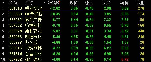 ?。ɑA(chǔ)層做市股跌幅前十名)