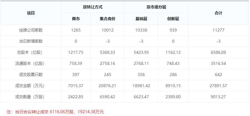 6月20日,創(chuàng)新層、基礎(chǔ)層分別成交0.89億元和1.9億元,合計成交2.79億元。