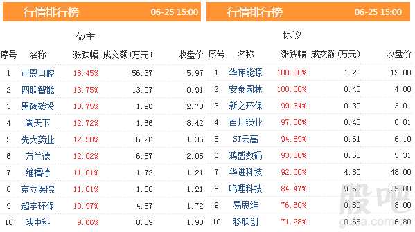昨日共有591只股票發(fā)生交易,成交金額4.83億元,做市轉(zhuǎn)讓成交1.16億元,協(xié)議轉(zhuǎn)讓成交3.67億元,成交數(shù)量11266.11萬股。