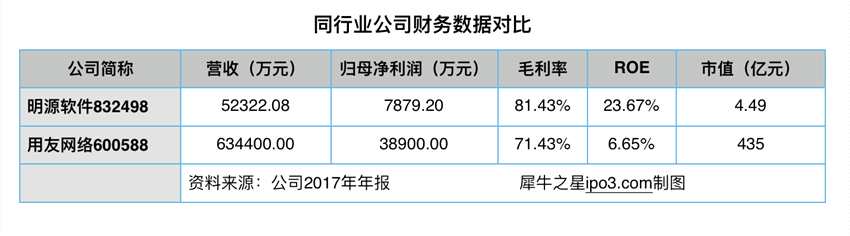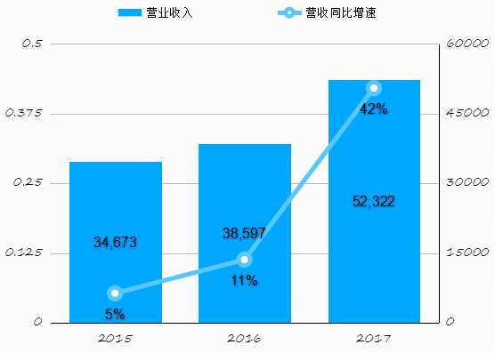 隨著公司SaaS產(chǎn)品的成熟以及用戶接受度的提高,公司2016-2017年的營收和凈利潤增長都開始加速,2015-2017年,明源軟件分別實現(xiàn)收入3.47億元、3.86億元、5.23億元,歸母凈利3507.51萬元、4722.04萬元、7879.20萬元。其中,2016年營收增速是11.32%,2017年就提高到了42.07%;2016年凈利潤增速是34.63%,2017年達到128.59%。