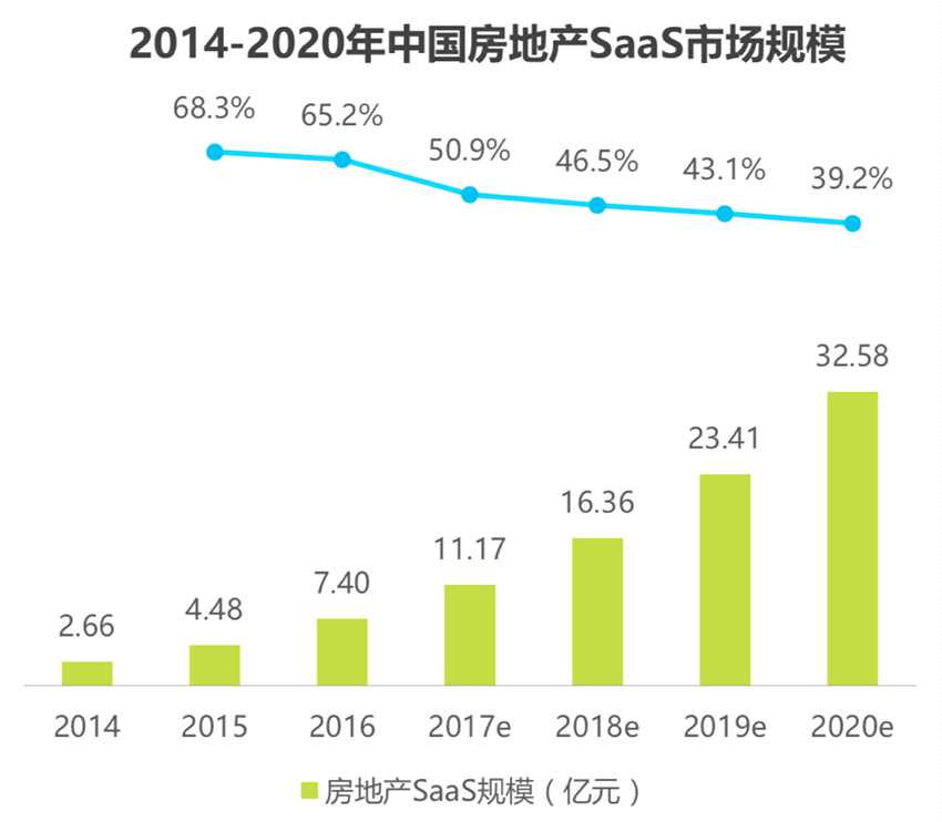 目前房地產(chǎn)SaaS市場還處于快速發(fā)展階段,2016年市場規(guī)模增速達到65.2%,根據(jù)艾瑞咨詢的數(shù)據(jù),預計2017年市場總量將突破 10億元,而且在未來幾年將保持30%以上的復合增長率。