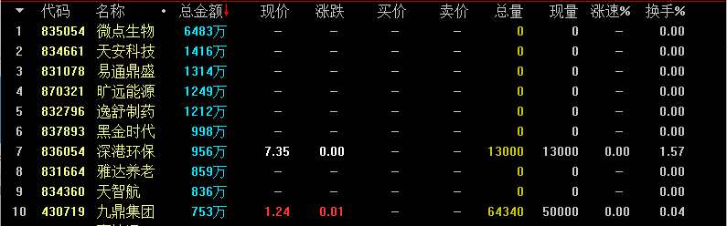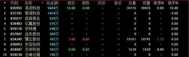 創(chuàng)新層競價交易股票盤內(nèi)成交額前十名