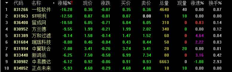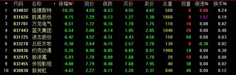 創(chuàng)新層做市股跌幅前十名