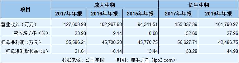 此外,2017年,長(zhǎng)生生物營(yíng)業(yè)收入和凈利潤(rùn)增幅相對(duì)較快,規(guī)模首次超過(guò)成大生物。