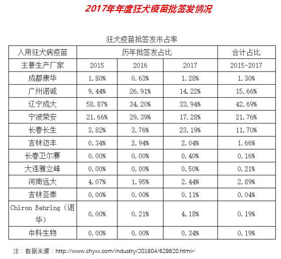 事實(shí)上,我國(guó)狂犬疫苗行業(yè)集中度非常高。長(zhǎng)久以來(lái),成大生物、長(zhǎng)生生物、寧波榮安生物藥業(yè)有限公司(簡(jiǎn)稱“寧波榮安”)、廣州諾誠(chéng)生物制品股份有限公司(簡(jiǎn)稱“廣州諾誠(chéng)”)占據(jù)狂犬病疫苗約90%市場(chǎng)份額。