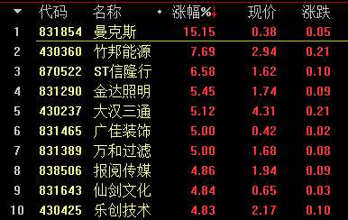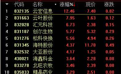 創(chuàng)新層做市股漲幅前十名