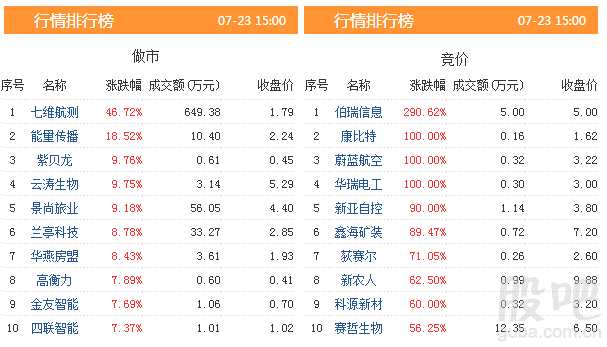 昨日有48只股票的成交額突破百萬元,5只股票成交額突破千萬元。
