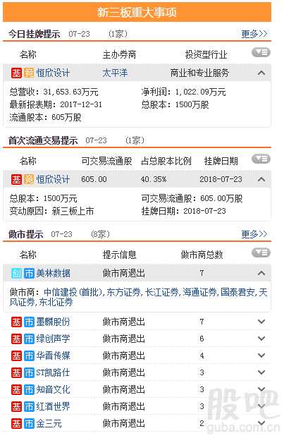 昨日新增掛牌企業(yè)1家,截至2018年7月23日,掛牌企業(yè)總數(shù)達到11125家。
