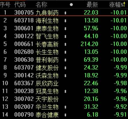 新三板在線看到,在醫(yī)藥板塊囊括的274只醫(yī)藥股票中,245只股票的股價在7月23日下跌。其中,除了康泰生物、長生生物等涉事企業(yè)外,還有10多只股票逼近跌停板。