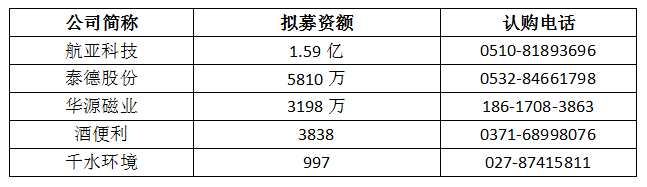 7月27日,新三板共5家企業(yè)啟動新一輪融資,分別是酒便利(838883)3838萬、千水環(huán)境(871092)997萬、華源磁業(yè)(832637)3198萬、泰德股份(831278)5810萬、航亞科技(870269)1.59億,5家企業(yè)擬合計募資2.97億。