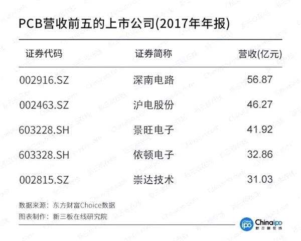 2017年,對于國內PCB企業(yè)來說,是一個IPO的小高潮。據(jù)新三板在線研究院統(tǒng)計,2017年A股新上市的PCB企業(yè)共有7家,合計營收規(guī)模超過175.5億元。至此國內PCB行業(yè)的上市公司數(shù)量達到了33家(包括港股)。