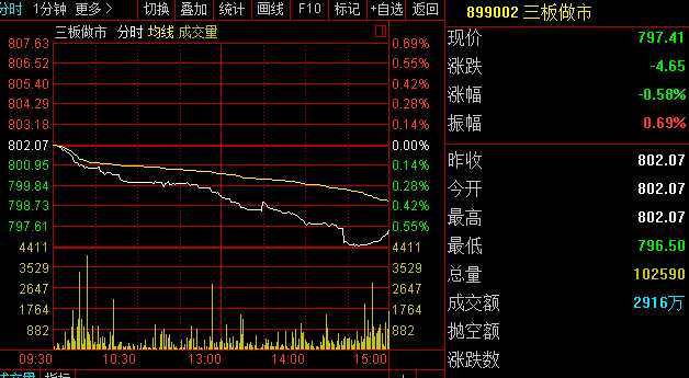 【8月6日新三板收評】做市指數(shù)跌破800點 總成交3.19億