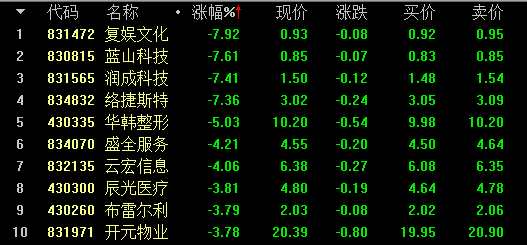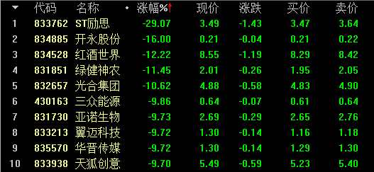創(chuàng)新層做市股跌幅前十名