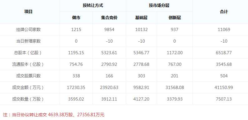 【前一交易日市況回顧】 8月10日,創(chuàng)新層、基礎(chǔ)層分別成交0.96億元和億元,合計(jì)成交3.16億元。