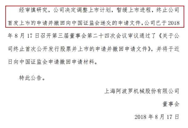 8月17日,阿波羅(832568)公告,經(jīng)審慎研究,公司決定調(diào)整上市計(jì)劃,暫緩上市進(jìn)程,終止上市申請(qǐng)并撤回遞交的申請(qǐng)文件。
