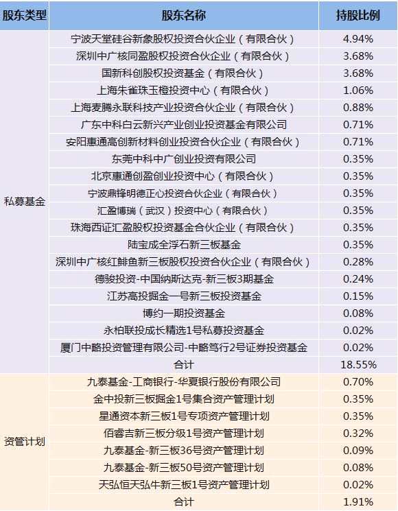 40名機(jī)構(gòu)股東中,有私募基金19個(gè),資產(chǎn)管理計(jì)劃7個(gè),其他類型股東14個(gè)。