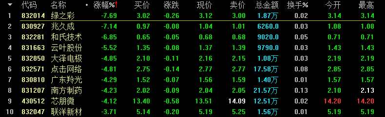 創(chuàng)新層做市股跌幅前十名