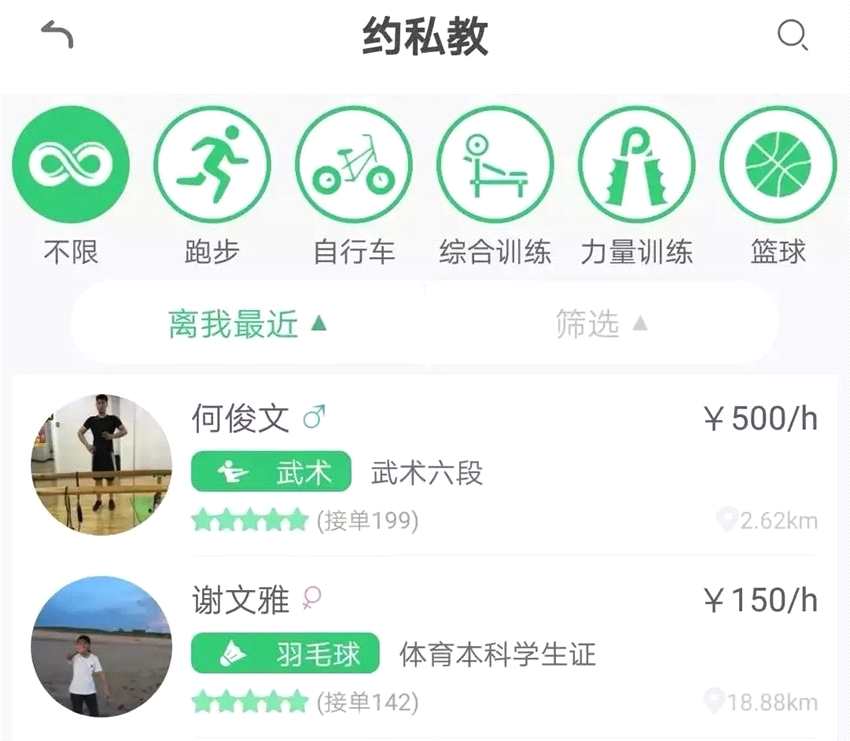楊驊力推出“健康貓”的初衷,就是要幫助像自己這樣的退役運(yùn)動(dòng)員二次就業(yè),使他們變成輔導(dǎo)各類(lèi)項(xiàng)目的私教。為了獲取用戶(hù),健康貓前往全國(guó)各大體育院校進(jìn)行宣講,平臺(tái)上線(xiàn)不到2個(gè)月,已有3000個(gè)私教在平臺(tái)服務(wù)。據(jù)說(shuō)還有40多個(gè)世界冠軍。