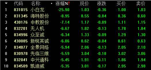 創(chuàng)新層做市跌幅前十名