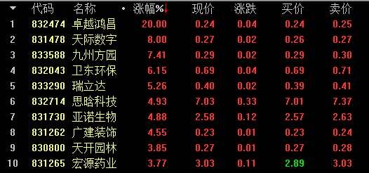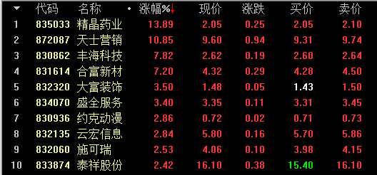 創(chuàng)新層做市漲幅前十名