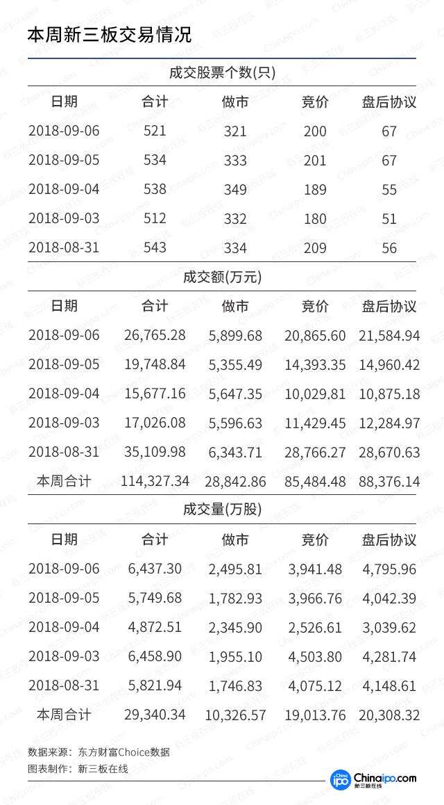 摘要: 本期(2018年8月31日至9月6日),33家公司正式摘牌。其中,9月4日有開源證券、欣網(wǎng)卓信等10家公司終止新三板掛牌。掛牌截至2018年9月6日,新三板共有10993家掛牌公司。其中,做市轉(zhuǎn)讓11