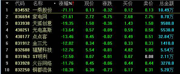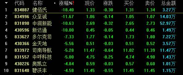 創(chuàng)新層做市跌幅前十名
