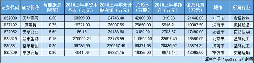 2018新三板中報分紅大觀:625家掛牌企業(yè)派發(fā)“年中禮包”,天地壹號“壕送”2個億!