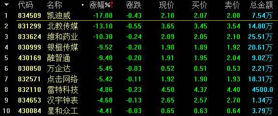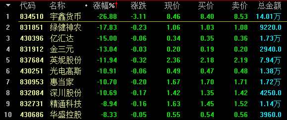 創(chuàng)新層做市跌幅前十名