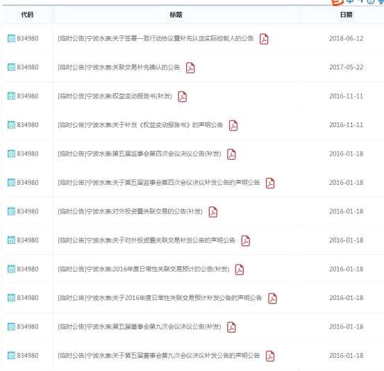 通過查詢發(fā)現(xiàn),自掛牌以來,寧波水表共發(fā)布了12個補充公告,涉及日常關(guān)聯(lián)交易、董事會決議、補充認定實際控制人等方面。