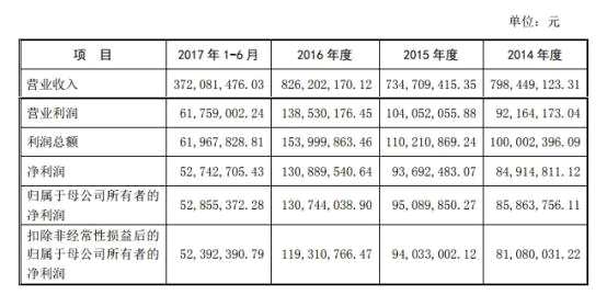 根據(jù)寧波水表最新的招股書,公司在2014年末、2015年末、2016年末和2017年6月末,實現(xiàn)營業(yè)收入分別為7.98億元、7.35億元、8.26億元和3.72億元,2015年度營業(yè)收入較2014年略有下降,2016年度較2015年度略有上升。