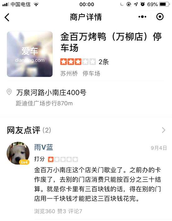此外,藍(lán)鯨產(chǎn)經(jīng)記者發(fā)現(xiàn),金百萬烤鴨店(萬柳店)的網(wǎng)頁點(diǎn)評中有消費(fèi)者留言稱,此前辦的卡去其他門店只能按照30%的比例結(jié)算。