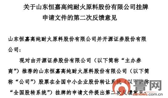 “考驗(yàn)”還沒完!山東恒嘉欲登新三板收“二反”意見