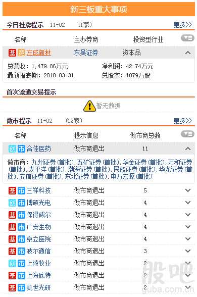 2日新增掛牌企業(yè)1家,截至2018年11月2日,掛牌企業(yè)總數(shù)達到10879家。